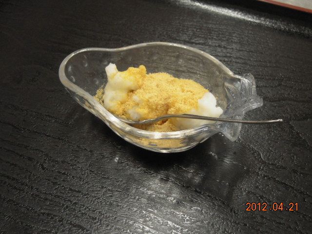 上にきな粉がかかっていまーすね。