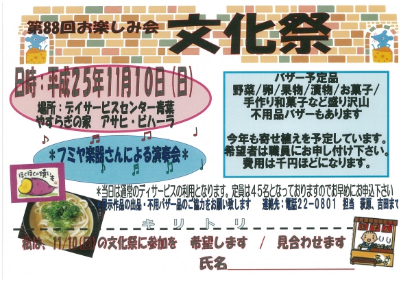 職員と利用者の触れ合い、楽しみを書き書きしております