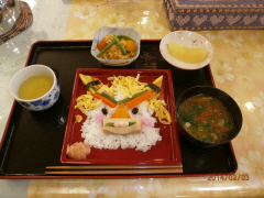 昼食はオニの飾り寿司